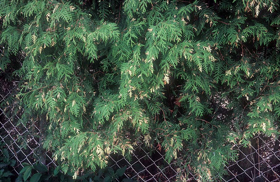 | Arborvitae (Thuja spp.), false cypress (Chamaecyparis spp.)
